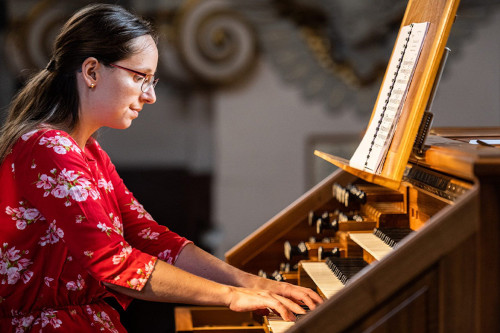 Als Sopransolistin wirkte erstmalig in der Basilika die junge Elisabeth Stemberg mit, die 2 Tage davor im AIMS-Abschlusskonzert in der Listhalle den Publikumspreis gewann. Neben dem berührenden Solo im Agnus Dei der Krönungsmesse sang sie auch das Ave Maria von Luigi Cherubini.